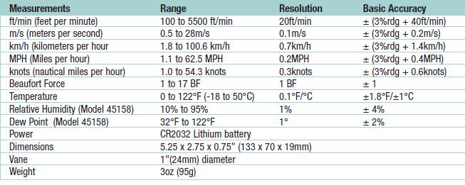 EXTECH 45158葉輪風速氣象儀的技術(shù)參數(shù)