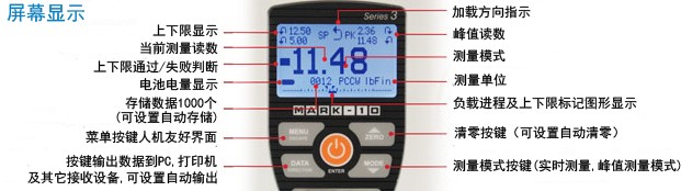 測量值實際顯示及峰值顯示 記錄第一峰值/第二峰值功能 3/8"方榫接口 高速7000Hz采樣頻率 1000個數(shù)據(jù)存儲帶統(tǒng)計功能輸出 USB,RS-232,Mitutoyo,及模擬輸出端口 斷裂識別/自動輸出/自動清零/自動存儲功能 密碼保護功能設(shè)置防止意外更改測量設(shè)置 上下限報警及通過/失敗判斷 5種測量單位切換 電池及交流適配器供電