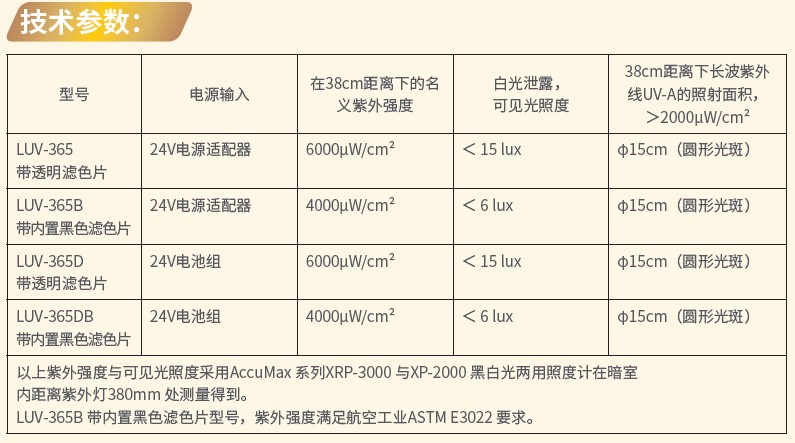 LUV-365美國(guó)LUYOR紫外探傷黑光燈的技術(shù)參數(shù)