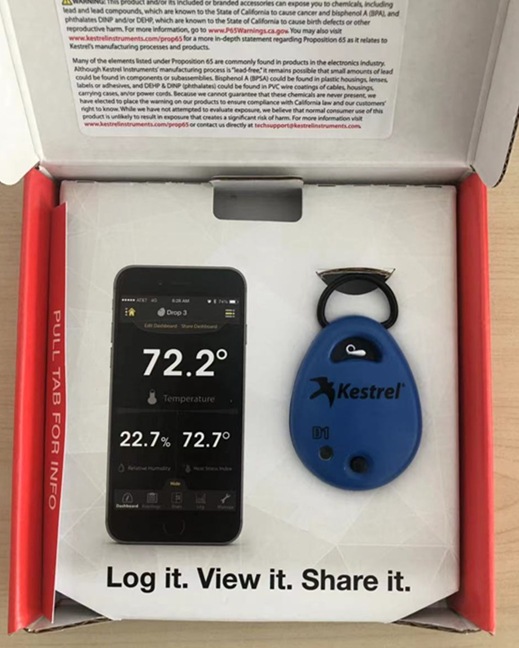 Kestrel記錄儀是容易使用的堅(jiān)固的環(huán)境數(shù)據(jù)記錄器。在三種型號(hào)–Kestrel D1溫度記錄儀,Kestrel D2溫濕度記錄器,Kestrel D3溫度、濕度和壓力記錄儀,三種型號(hào)都支持實(shí)時(shí)傳送圖表和數(shù)據(jù)到您的手機(jī)或平板電腦。 ●藍(lán)牙智能(無線技術(shù)) ●數(shù)據(jù)記錄器 ●跌落測試,MIL-STD-810G ●IP67防水 ●輕質(zhì)耐用 Kestrel D1記錄器的設(shè)計(jì)可使用在任何你需要跟蹤的環(huán)境。體積小(6×4.5×2.3cm),準(zhǔn)確,堅(jiān)固耐用(跌落測試,MIL-STD-810G),防水(IP67防水),重量只有34g。 每個(gè)Kestrel D1記錄器的CR2032鋰電池可持續(xù)使用4個(gè)月,存儲(chǔ)超過13000組的溫度讀數(shù)。
