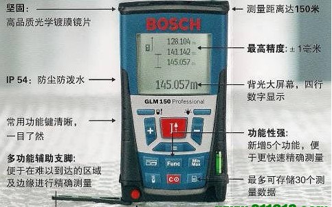 GLM 150激光測(cè)距儀范圍達(dá)150m,高精度,GLM 150手持式激光測(cè)距儀具測(cè)量距離、長度、高度、計(jì)算面積、體積等功能,