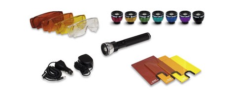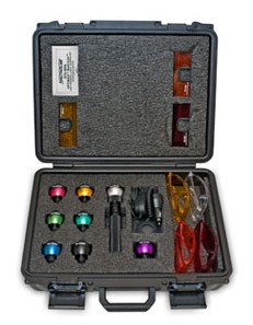 OFK-8000 OPTIMAX™ Multi-Lite™ 多波段警用檢查套裝配有結(jié)實的黑色陽極化鋁手電殼體、八個可快速更換的LED燈頭(UV-A(長波紫外)、紫光、藍(lán)光、藍(lán)綠光、綠光、琥珀光及白光)、三個插入式濾色板(黃色、橙色及紅色)、交流及直流充電器、四個眼鏡(紫外防護(hù)、橙色、黃色及紅色眼鏡)及一個帶泡墊的手提箱.。