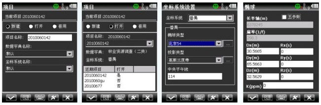 簡便的項目配置 Ⅰ項目式數(shù)據(jù)采集管理方式,可按日期或自定義新建、打開、套用項目; 數(shù)據(jù)字典可自動選擇或現(xiàn)場新建; Ⅱ坐標(biāo)系統(tǒng)可設(shè)置專業(yè)的七參數(shù)或通用的五參數(shù),坐標(biāo)數(shù)據(jù)可選擇經(jīng)緯度或平面坐標(biāo)格式。