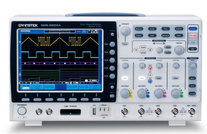 固緯GDS-2204A數(shù)字示波器具有200MHz的帶寬,4組輸入通道。2M記錄長度不僅支持長時間的波形存儲,也對后期分析提供了充足的數(shù)據(jù)支持。兩個選配搜索引擎,DS2-RSH和DS2-SGM,用于在記錄長度中搜索感興趣的波形。DS2-SRH定義了搜索的波形類型,DS2-GSM則將整個記錄長度分成若干段,僅通過瀏覽包含目標波形的段落,達到提高波形搜索速度的目的。