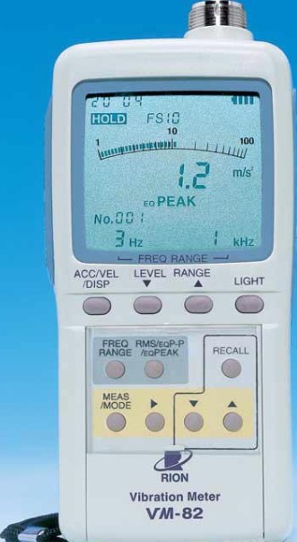 日本理音(RION)公司生產(chǎn)的VM-82便攜式數(shù)字測(cè)振儀重320克,是VM-63測(cè)振表的改進(jìn)型,使用分離式振動(dòng)傳感器,可對(duì)微小振動(dòng)及超強(qiáng)振動(dòng)進(jìn)行測(cè)量, VM-82便攜式數(shù)字測(cè)振儀可測(cè)機(jī)械設(shè)備的振動(dòng)位移、速度(烈度)和加速度。 VM-82便攜式數(shù)字測(cè)振儀可以儲(chǔ)存1000組測(cè)點(diǎn)的數(shù)據(jù),并能與微機(jī)進(jìn)行通訊。已開(kāi)發(fā)的軟件具有如下功能: (1).信息管理(包括機(jī)器、測(cè)點(diǎn)及測(cè)試數(shù)據(jù)的管理、建立檔案) (2). 儀器與微機(jī)通訊 (3).趨勢(shì)分析 (4).打印報(bào)表(機(jī)器報(bào)表、測(cè)點(diǎn)報(bào)表) (5).狀態(tài)判斷(自動(dòng)判定狀態(tài):良好、注意、危險(xiǎn))