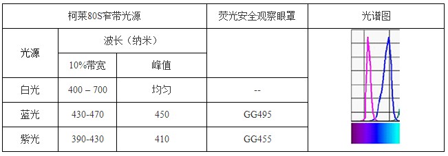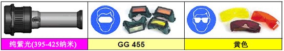 注意事項(xiàng): ★勘查時(shí)必須佩帶GG495觀察眼罩 ★拍照必須加GG495濾色鏡 ★使用環(huán)境:盡量選用暗場環(huán)境