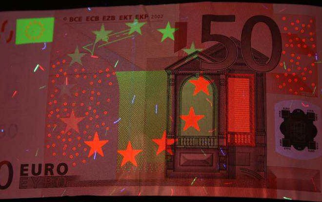 利用LUYOR-21紫外線閃光燈拍的50歐元的紙幣:
