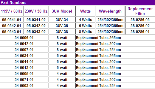 3UV-36美國UVP三波段紫外線燈的參數(shù)及應(yīng)用: